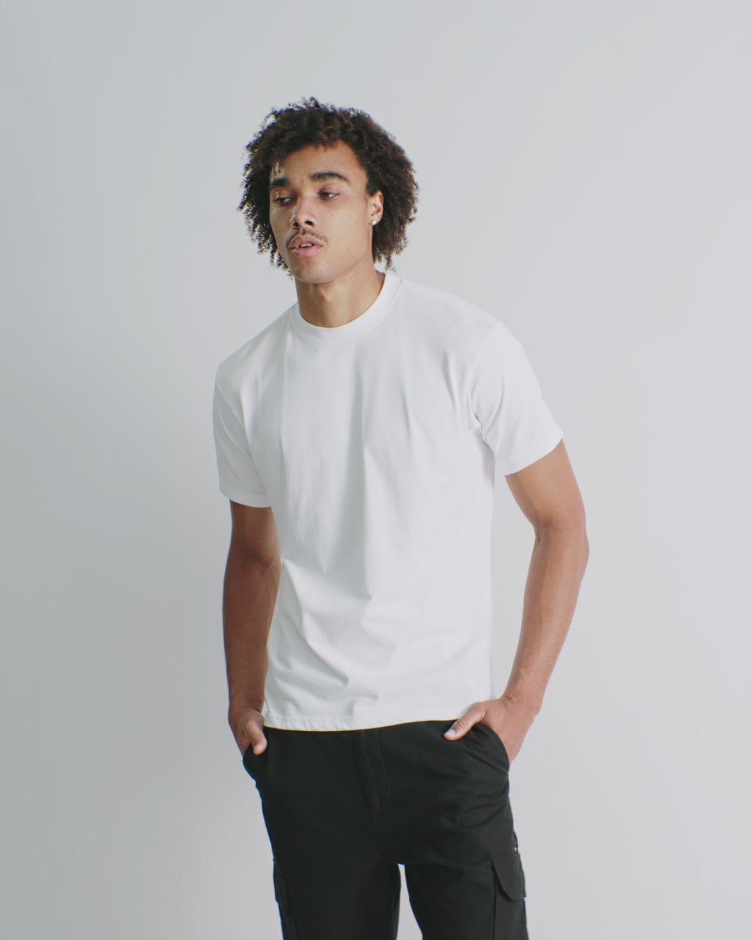 Features ribbed neck detailing, side seams for a refined silhouette, shoulder-to-shoulder taping, and double-needle hems.